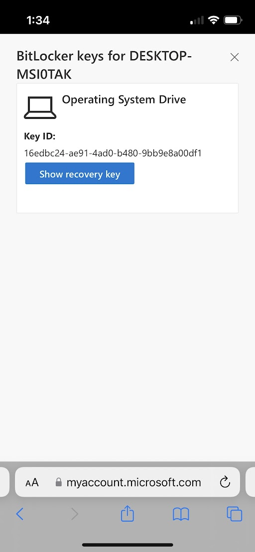 - Finally, click "show recover key" and copy that ~40-digit key into your laptop